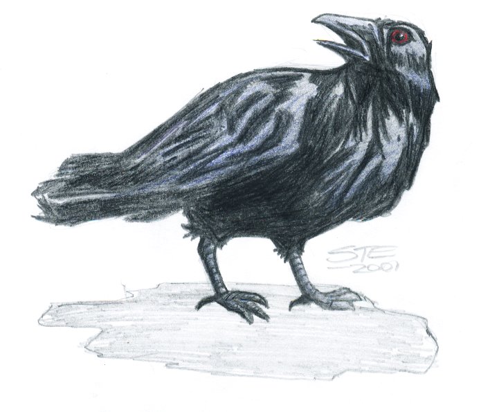 | I love this pic, I did it a while back. I was inspired by a book, well a comic book believe it or not... a bird in "the Dreaming" absolutely awesome. This is the pic that made me realise I like crayons... I soon after bought a box of more varied colours :) ...the shadow looks a little dodgy though, outline too strong... |