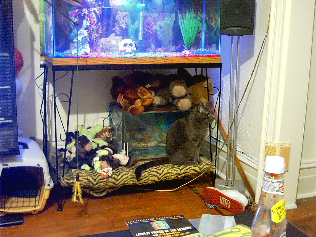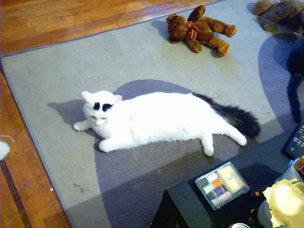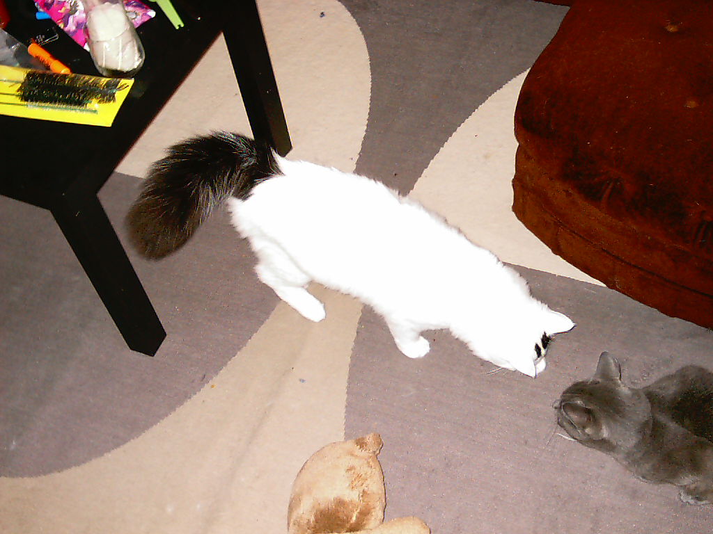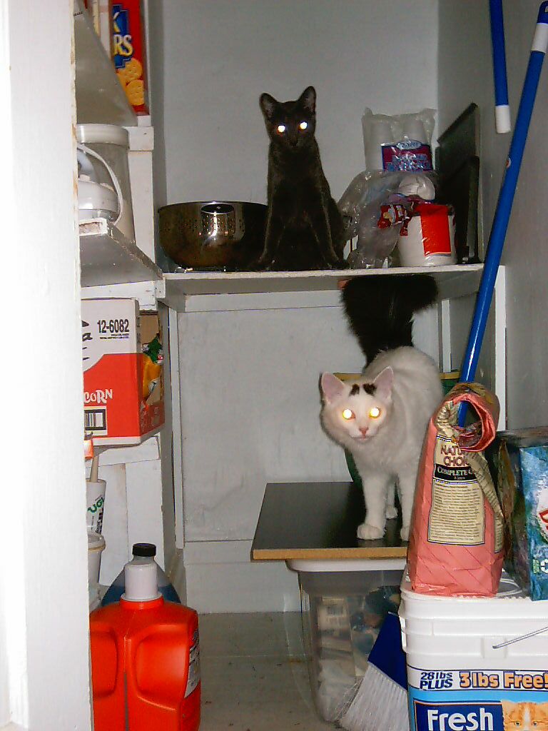 Tyler is white and Ash is Grey. I gave Tyler his name from Brad Pitt's actor name in Fight Club, Tyler Durden. I gave Ash his name from Bruce Campbell's actor name in Army of Darkness. They are the cutest cats alive :)
