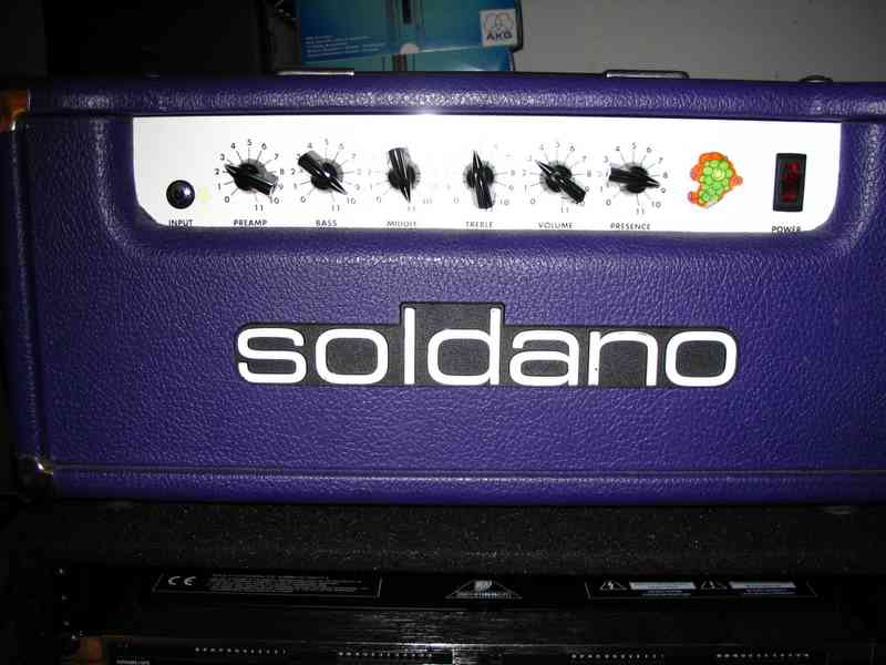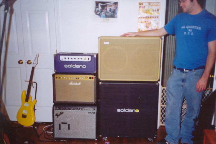 This was my main amp for at least 4 years, my Soldano Atomic 16 head. I have stopped using it live because it only has one channel and I needed the flexibility of two channels since I do a lot of switching live. It is a very complex sounding amp but doesn't have a ton of gain or bottom end, but certainly enough for me. It sounds awesome on tape and I will continue to use it in the studio. It was used on all of the dirty parts for It's Time to Rock, The Last Stretch Demo, and the first CJE album. Also, all of the controls go to 11; seriously.