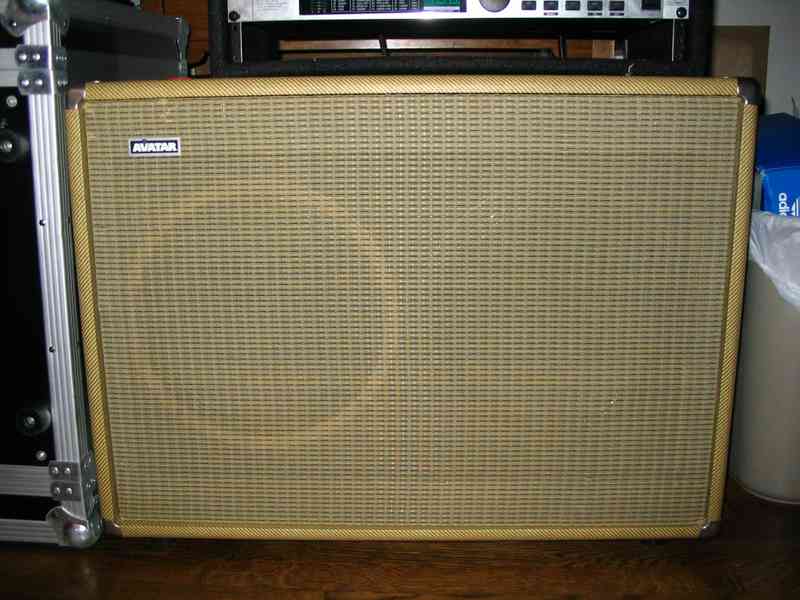My Avatar 2x12 cab. I had this made for me my freshman year in college as an alternative to my Soldano cab. It has a celestion Vintage 30 and G12H30 in it. It actually sounds great and was very affordable. I used it for half of It's Time to Rock and in an early incarnation of my Last Stretch rig.