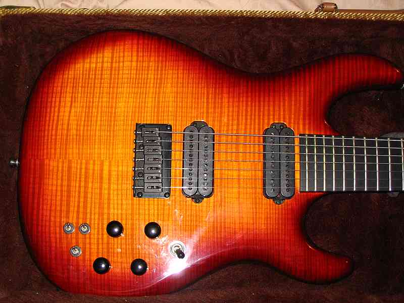 This is my main recording guitar, my Carvin DC727 7 string. It has the best sound to tape of all of my guitars. I used to use it live, but I never really used the low B, so I switched to my LP. It was used on one song from It's Time to Rock, half of the Last Stretch Demo, and most of the unreleased Last Stretch Album.