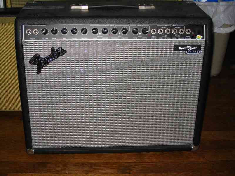 This was my first real amp, a Fender Princeton Chorus. My parents bought it for me right before I played my first gig in 8th grade. I have since used it for clean sounds on the first CJE record, and for clean and overdriven sounds paired with my Gainiac tube preamp on the Last Stretch Demo and with in my old Last Stretch rig. It is one of the best solid state amps I have ever played. It now sits in my house, by itself.