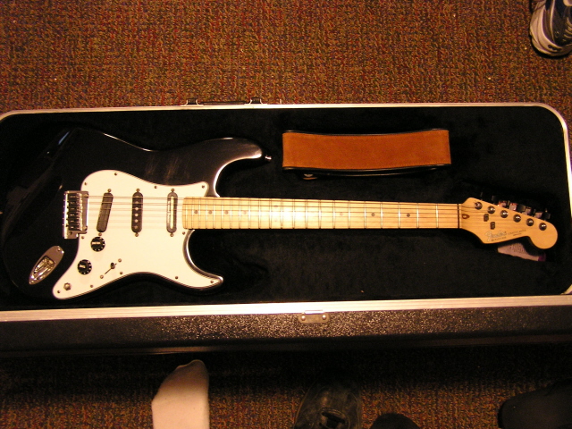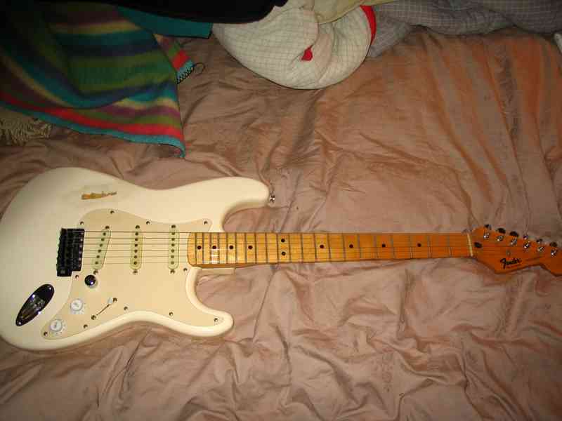 My crappy Fender Squire Strat. I bought this as a beater my freshman year of college. It has never never been on anything I have recorded cause it sucks.