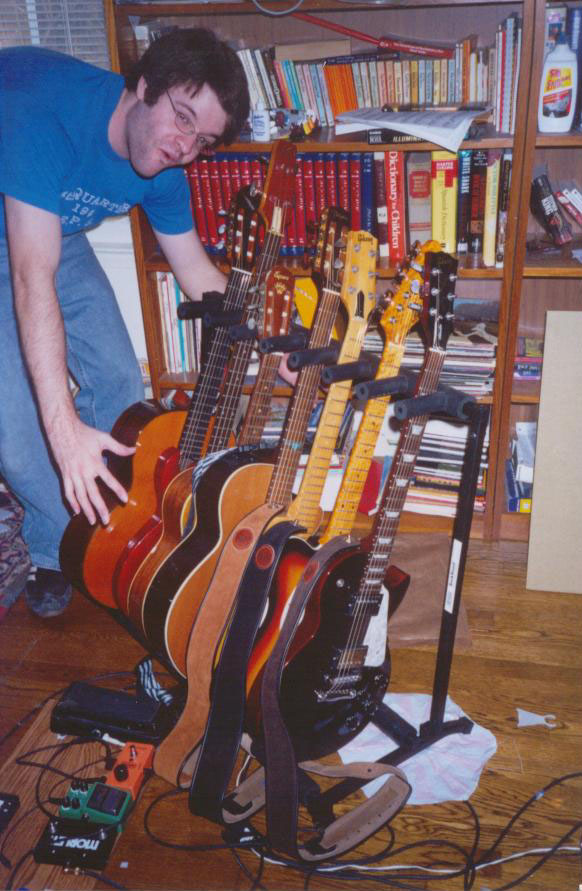 Electric-94' Gibson Les Paul Studio, 03' Carvin DC727 7 string, 94' Fender American Strat, 98' G&L ASAT Classic Three (only 100 made), 91' Fender Squire Strat, Homemade 1 Humbucker guitar