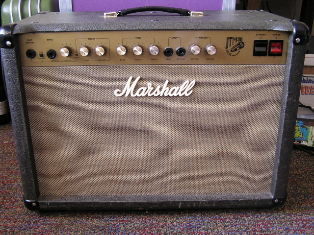 This is my Marshall JTM 30 combo. It is used as a practice amp and as a backup to my Carvin. I have recently been using it in the studio for Sack Lunch stuff and I have been very impressed with the tones I have gotten. I also got this amp for super cheap because I find the sweetest deals! It was used on most of the clean parts on It's Time to Rock, most of the Macdonalds Demos, 30% of the unreleased Last Stretch album, and 100% of the Sack Lunch EP.
