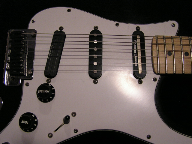 The previous owner of this guitar changed out the bridge and neck pickups for Seymour Duncans. The bridge is now a Hot Rails and I have no idea whats in the neck. The hot rails sounds very percussive and has a lot of bite which is very cool. The volume and tone knobs are also push pull pots. The volume splits the coils of the neck and bridge, and to be honest, I have no idea what the hell the other one does. What a sweet and mysterious guitar!