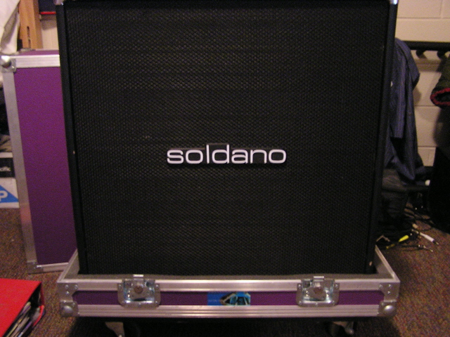 My beloved Soldano straight front cab. I really don't see myself ever selling this cab because it makes any amp sound awesome. I even bought a custom purple flight case for it just to make it harder for me to carry around. I would love to have another one of these, but then I would have to buy another heavy ass flight case. It was used on everything I have ever recorded except for the Sack Lunch EP.