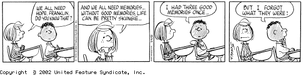 in memory of Charles Shultz. Thank god he never had to see 9-11 before he left his well remembered life.