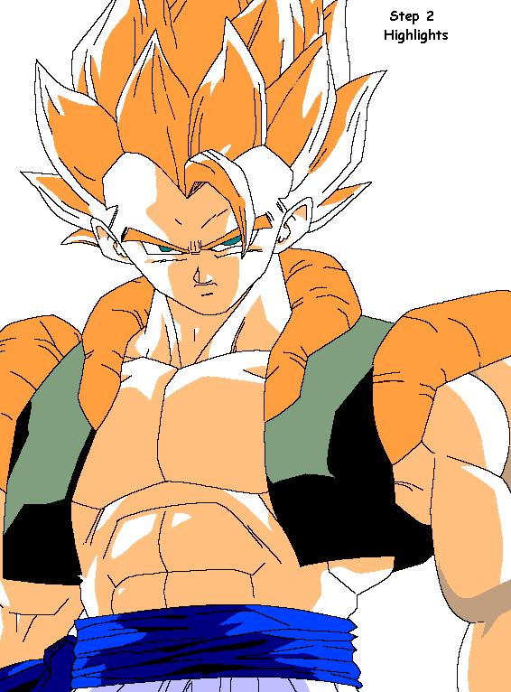 | Highlights are lighter than the basic colors. The tricky part of highlighting is knowing were the highlights go. Instead of blending the colors together in a gradient, catooon shading is croped off as a shape and filled in. The highlights depend on were the light is showing. look at yourself in a mirror with the light above your head and you will notice the highlights hit the top of each part of the head. The light will hit the top of the nose making it lighter and will not hit the bottom of the nose. In between the highlights and shades is the neutral or basic color. This lighter color can be acheived by either adding white over top of the basic color or by using a lighter hue of the basic color. |  |