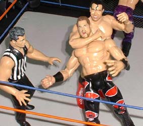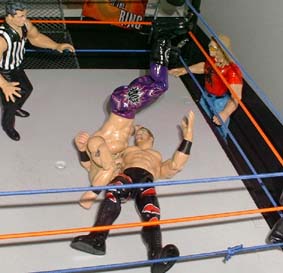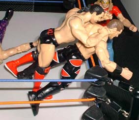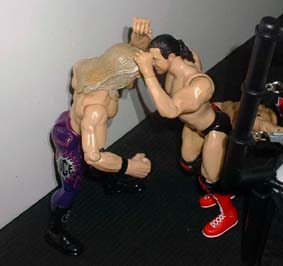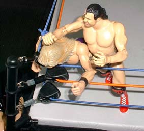 Jesse - "and now he pummels away on him with some clubbing blows to the back of the neck, driving Edges head into the turnbuckle"