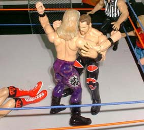 Bret - "Scott Hall drops drom the apron and hits Edge with a double axe-handle"