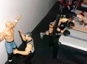 Jesse - "He probably wants to point something out to the referee, he's got a good view from ringside"