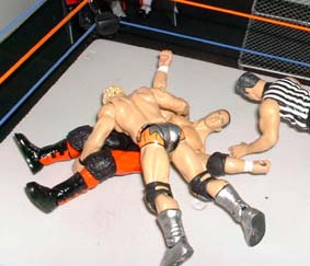 Jesse - "Look at that, that cheat just knocked Justin right to the arena floor"