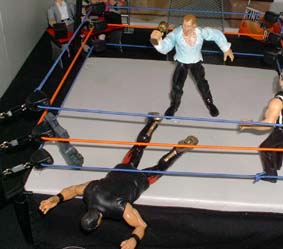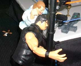 Bret - "Gangrel keeping the pressure on Eddie, he slams him into the steel ring post"