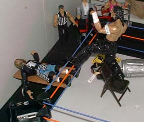 Bret - "Sabu's still slumped in the corner, and Ravens taking this oppertunity to set up some steel chairs"