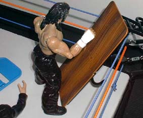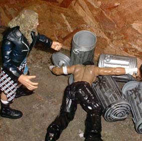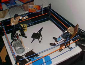 Bret - "Ravens not finished with Sabu yet, he picks him up and throws him into those trash cans. This match has gone back and forth so far, but it could be all over now"