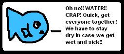 Going back to my point, the frog says that he needs to get out of the rain because he'll get wet and he "might catch a cold". So he jumps in a pond. OOooOOO, top marks there, froggy. What a logical solution! Why don't we go from somewhere only remotely wet to somewhere consisting largely of water and pondscum, which is also wet? And if you've ever seen a pond which is home to lots of frogs while it's raining, you'll notice that they all go out of their ways to actually be in the rain. REBELLION? Or just logic?