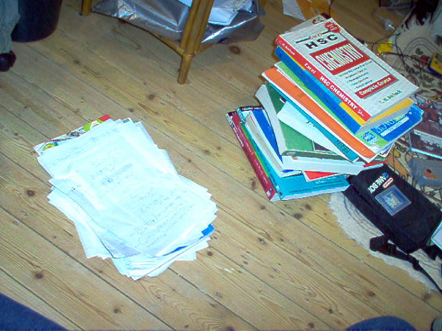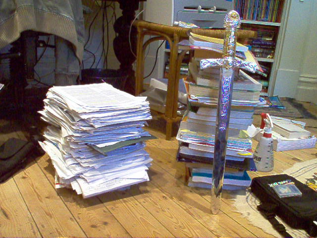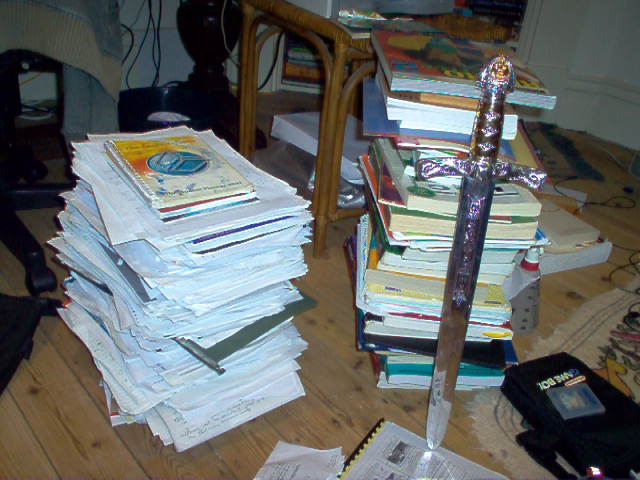 And so the piles grew. The one on the right, text books. The one on the left, notes and handouts. ----------------