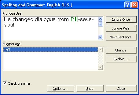 - Gee, I'm so glad I can always rely on spellcheck to correct my grammar for me.