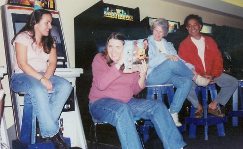 Jane accosting Sponge Bob as Sofi and my parents look on, November 2002.