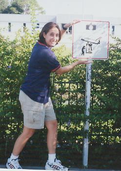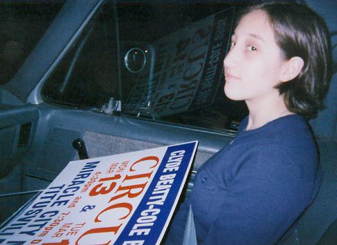 Fresh from her first felony, Ness rests with the spoils of her heist, March 2000.