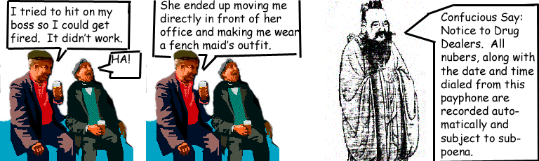 Confucious Says This just might become a regular thing. I'll still call it the rotating hole, though, just that's so damned catchy. The higher the number, the newer the comic. Enjoy, sucka! |