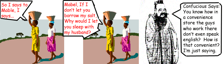 | Confucious Says 3: The 24/7 convience store has locks on it's doors because that's how doors are made, stupid. | |||||||||||||||