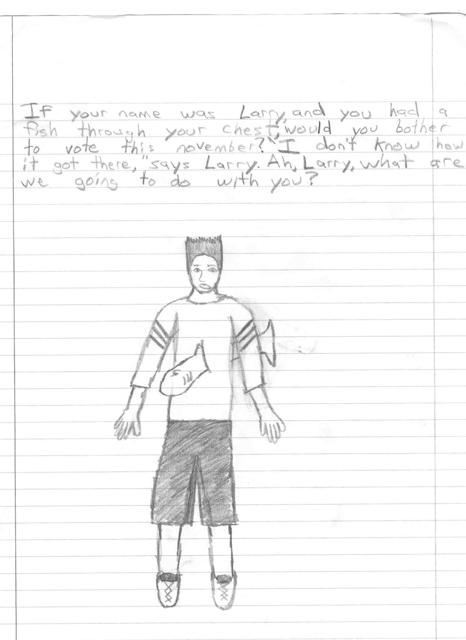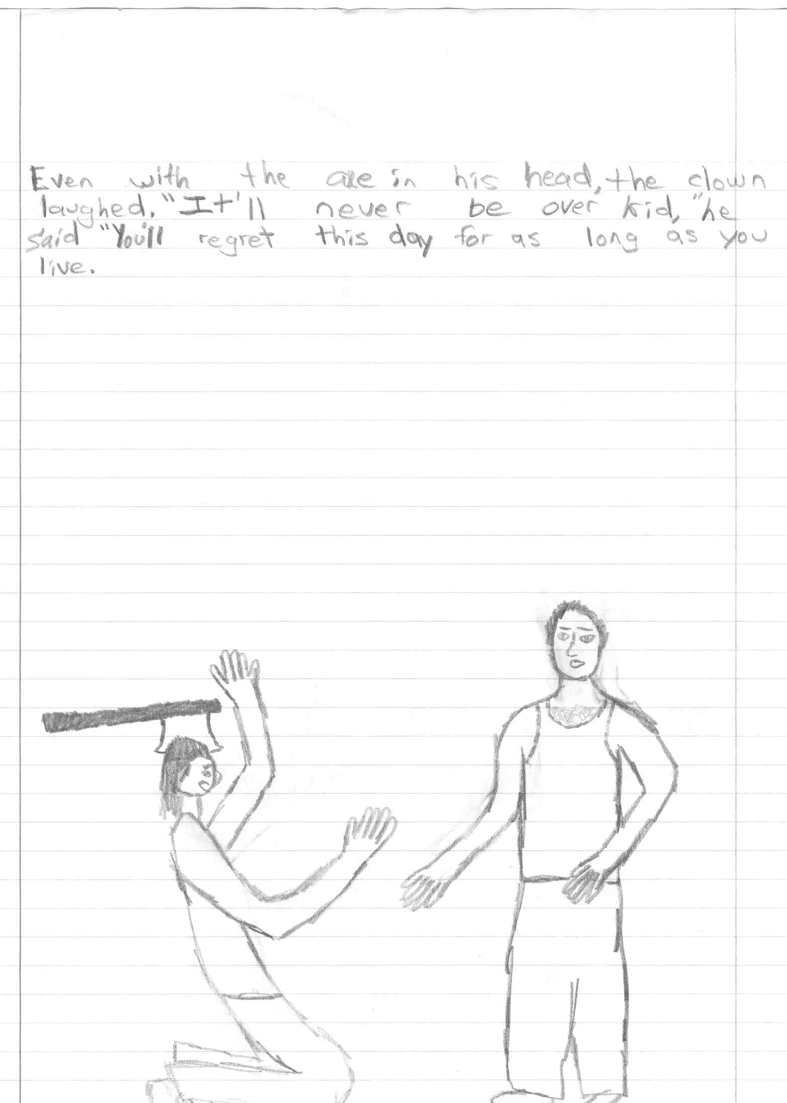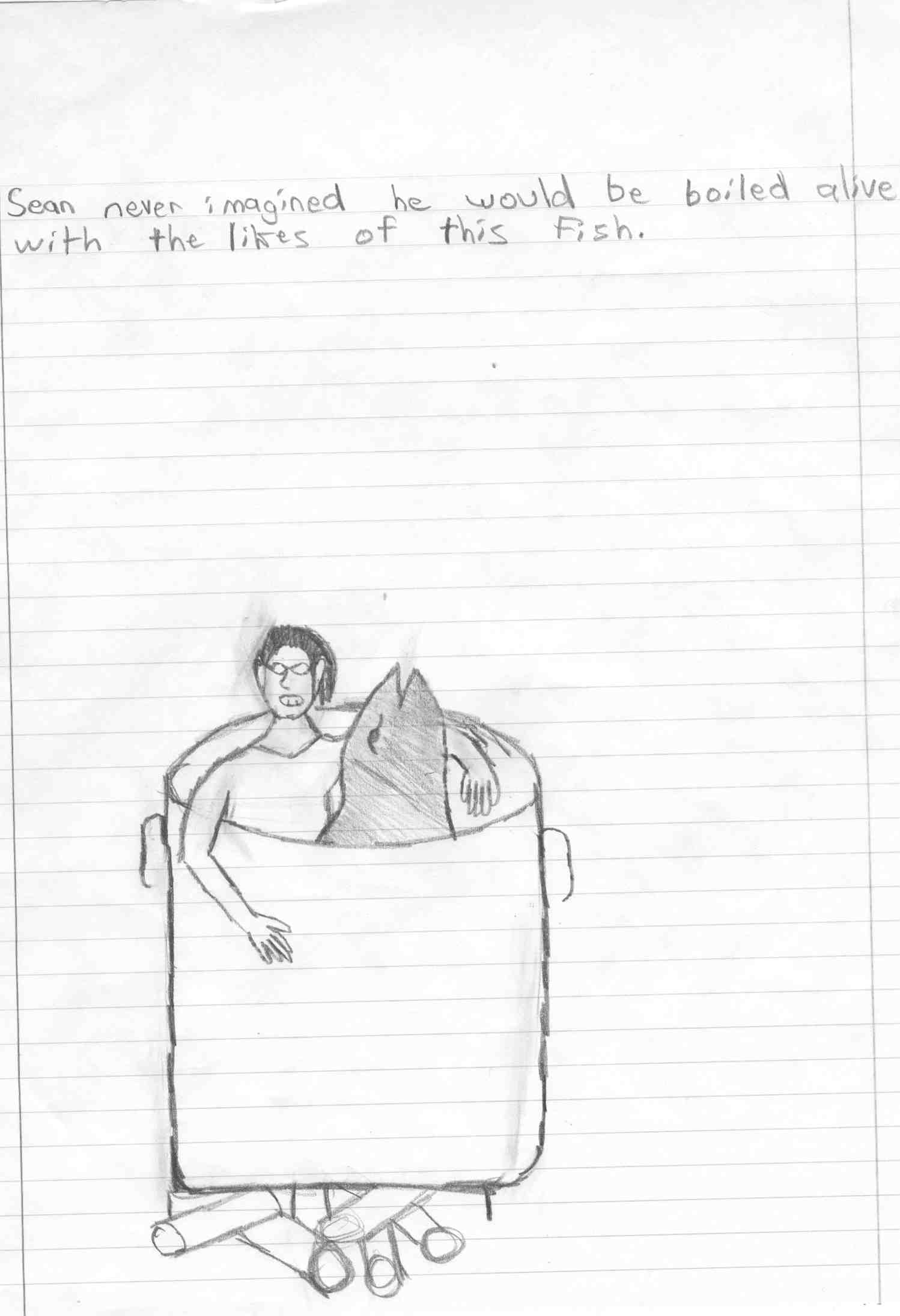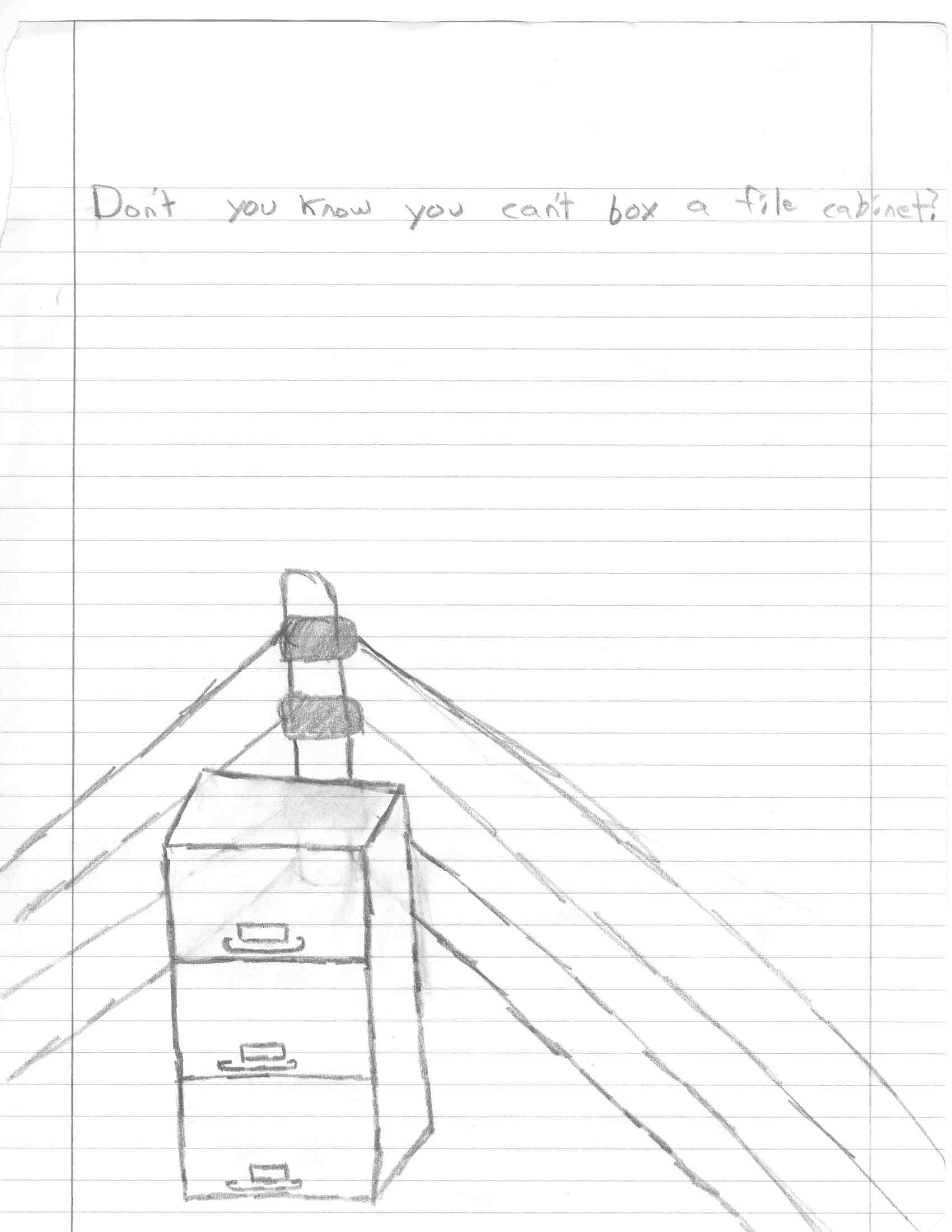 High school started as a challenge for me, not in terms of the work, it just sucked. So, I started going insane. I had no appropriate outlet for my budding insanity. Sometimes in school, I would just start drawing a picture. Now, this is before I learned to draw, so the figures are crude, the shading is often nonexistent, the perspective is skewed, but none of that is the point. (Hey, cut me a break, I was starting to lose it!) The drawings, plus their captions, were really weird. I mean really really weird. Even for me. So now, for the first time ever outside a folder in my room, the byproduct of my ninth grade insanity.