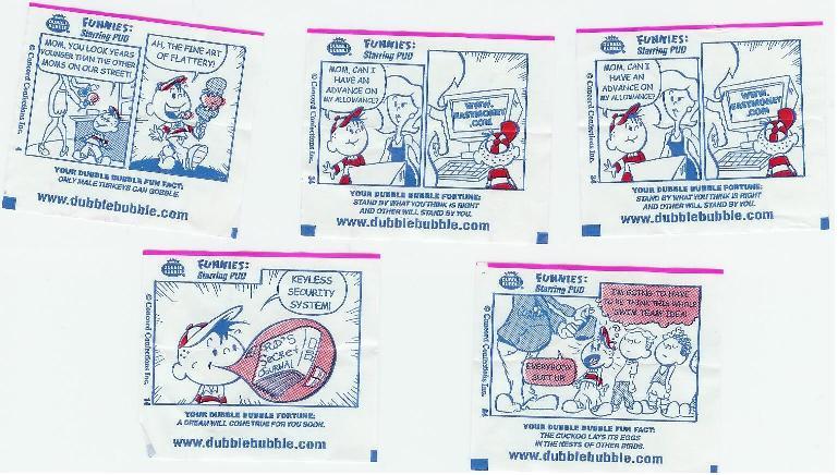 But back to Pud. He's the real reason why I hate Dubble Bubble. Along with his distant cousin Bazooka Joe, who at least has a cool name (What's the deal with Pud? It sounds like an Austrian beer), he has made it his mission to worm his way into every piece of individually wrapped gum. And why? To be funny? Of course not! He's never funny! And there's only about 6 different comics, so you end up with 14 copies of each one. Here are the ones that I got on Halloween: