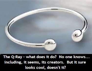 Even the Q-Ray's promoters aren't quite sure what it is. Their official webpage, on the subject of what their product does, has this to say: