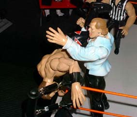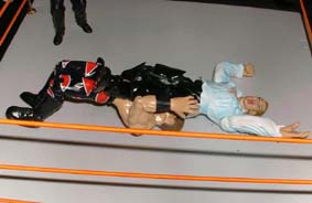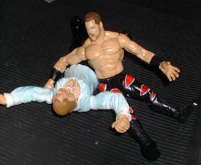 Jesse - "No he doesn't he just dumps him out the ring to the arena floor instead"