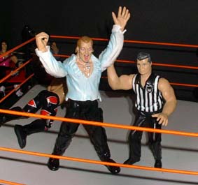 Commissioner - "Well a lots changed since then, but I'll give you a chance to show how good you are. Lance Storm can't wrestle tonight so I'm going to have to rearrange the main event tonightSo you'll be wrestling Jeff Jarrett instead, and if you impress me tonight I'll see about a title shot"