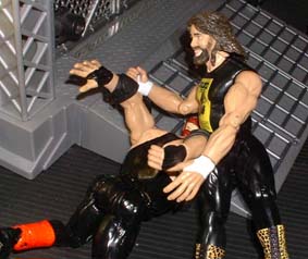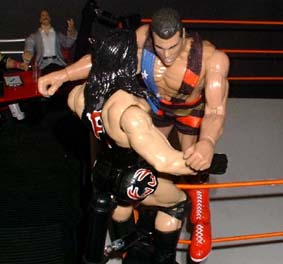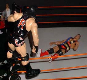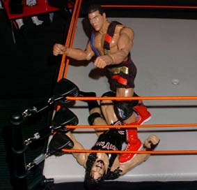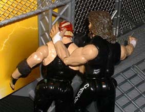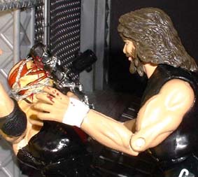 Bret - "That impact on the floor has really dazed Vader and now Cactus is in control, he slams his head into the metal entrance structure"