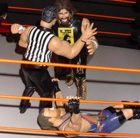 Bret - "He certainly is, he springs up and catches Cactus with a heel kick that sends him tumbling over the ropes"