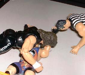 Bret - "RVD swings another kick, but Catus ducks and hits him with a powerful clothesline"