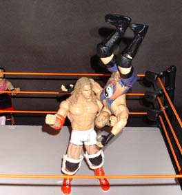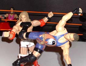Bret - "RVD comes off the ropes and goes for a cross body block, but Christian catches him and slams him into the canvas"