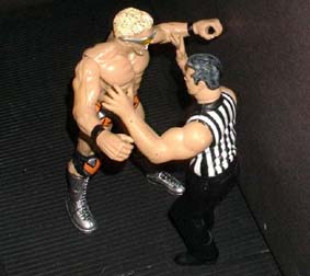 Bret - "Saturn hits the ring and flattens Credible with a clothesline"