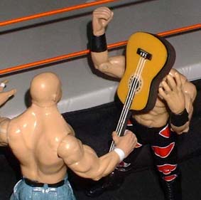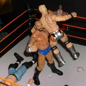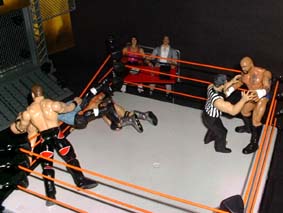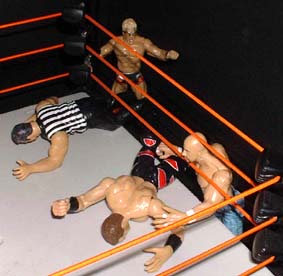 Bret - "Credibles rolling Benoit into the ring after that vicious guitar shot, and it looks like the New Blood are gonna get the win"