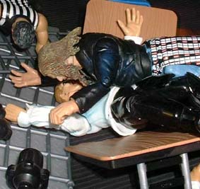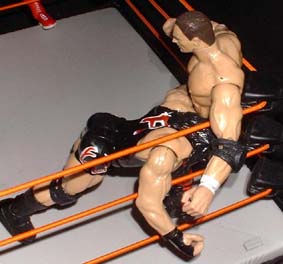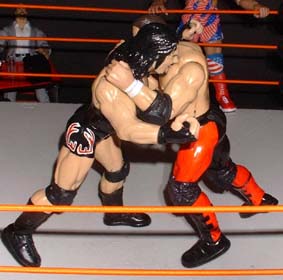 Bret - "Rhyno shows his strength advantage. slamming Storm back into the corner"
