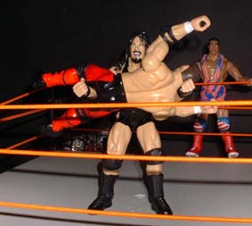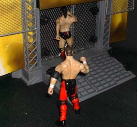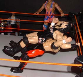 Bret - "Rhyno charges at Storm as he staggers to his feet"