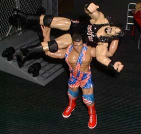 Bret - "Kurt Angle comes round to Rhyno, Rhyno cost Angle the RWA title at King of the Ring and Angles been waiting for his revenge"