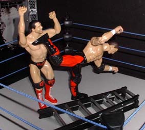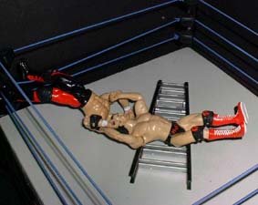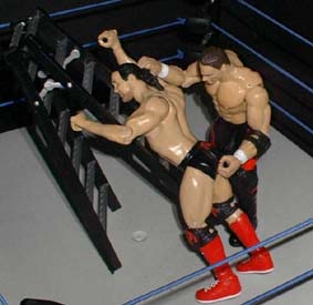 Jesse - "Ow and then slams him into the ladder"