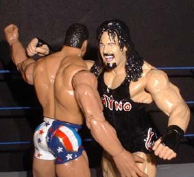 Jesse - "Angle has got some great moves, but can he survive the shear ferocity of Rhyno"