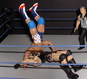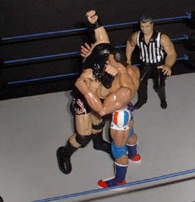 Bret - "Angle capitalizes by hitting a powerful atomic drop"