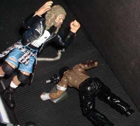 Bret - "Raven picks up that trash can full of weapons and just hurls the whole thing over the top"
