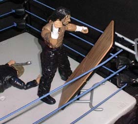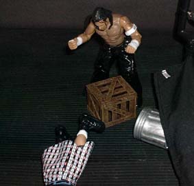 Bret - "And then he drives Raven into that steel ring post, the crate giving it some extra impact"