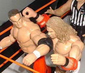 Bret - "But theres nothing technical about that, Christian shows his vicious side, choking Storm over the tope rope"