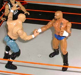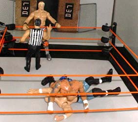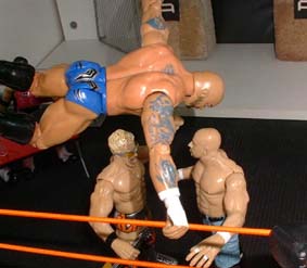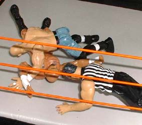Bret - "Saturn whips Credible into the ropes"