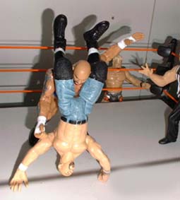 Bret - "Saturn rolls him back into the ring and drills him with a piledriver"