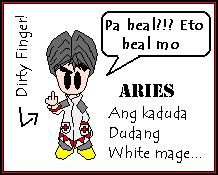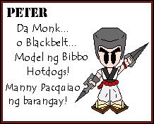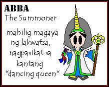 mga tols! gawa nalang tayo page pra sa profiles natin! cguro prang kagaya ng sa friendster lang din... pro pede d2 na natin lagay ung mga links na gusto nyo... kumbaga prang members page... pede kayo palagay ng KAHIT ANO sa kanya kanya nyong page! wala pa laman karamihan... bka nga di rin makumpleto to... kya kapag wala magpapasulat... ung page nung character susulatan KO nalang ng kung ano ano... gaya nung mga email add... bertdays... tsaka iba pa oks? send nyo lang sakin mga gusto nyong ilagay ko dun sa page nyo pls! kung gusto nyo makita sample, tingan nyo nalang ung "zetaro" kc nilagyan ko na laman... tas pede kung me website kayo, lagay ko narin sa page nyo link... gaya ni olops... o kya kung gusto nyo rin, lagay ko na link papuntang friendster account nyo... sensha narin pla sa mga nakabisita ditong wala pang drawing... ung pinaka drawing na kc ung pindutan... pasabi nalang po kung gusto nyo na kagad magawan... kc gagawan ko naman lahat ng naaalala ko... di ko lang maisep pano style nila kapag kinarakter na... tsaka kung me gusto rin po kayo pabago... sa damit, sa jobs, sa hitsura, kulay etc... kung me pinabago na po kayo, ehehe yaan nyo po pinagiisipan ko na pano babaguhin... sige po uli... pasend nalang po nung mga gusto nyong ilagay ko sa page nyo... tsaka pede ren ung piks nyo sa friendster lalagay natin d2... oks!